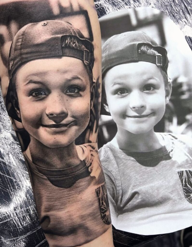 Sissy: Danke dir! Realistic hat mich schon immer fasziniert, weil es die größte Herausforderung ist, Leben und Emotionen auf die Haut zu bringen. Black & Grey passt einfach perfekt dazu – es hat diese Tiefe, dieses Zeitlose. Für mich erzählt Schwarz-Grau oft mehr Geschichten als bunte Farben es könnten.